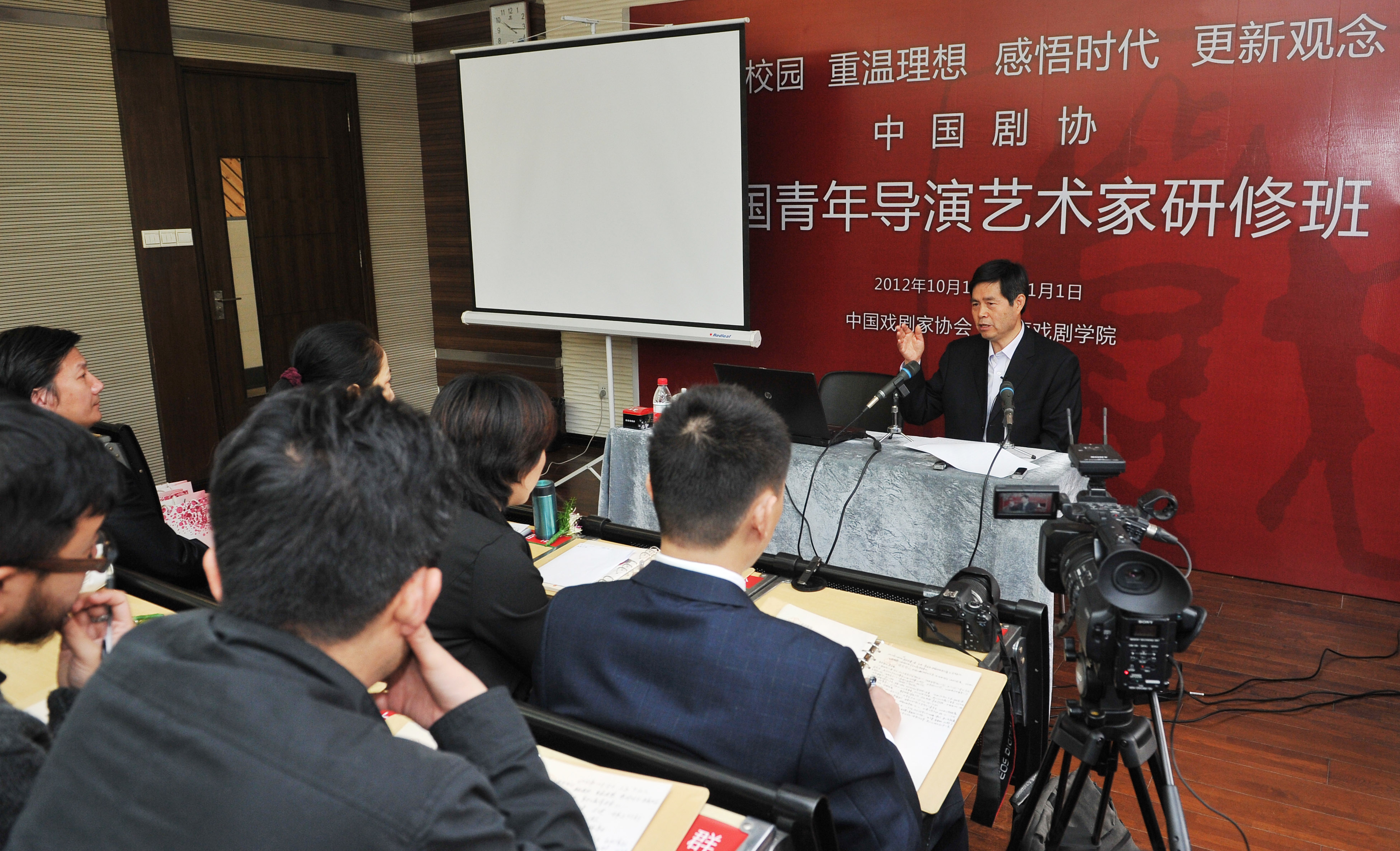 开班典礼和授牌仪式结束后,戏剧理论家季国平向全国青年导演艺术家研修班学员做了题为《中国戏曲,拿什么赢得未来》的首场演讲。