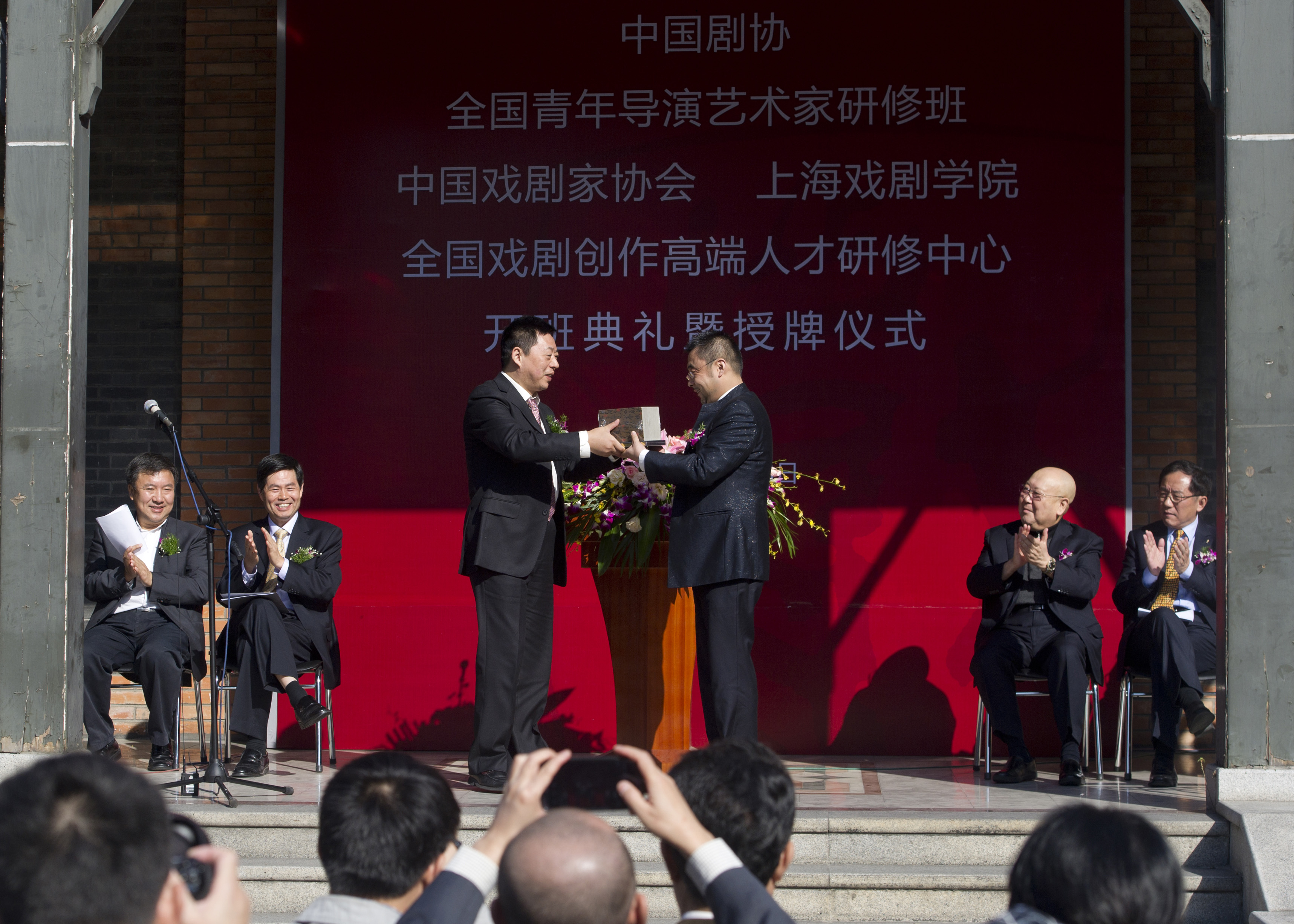 继去年全国青年剧作家研修班在沪成功举办,全国青年导演艺术家研修班于今天在上海戏剧学院开班。与此同时,由中国戏剧家协会与上海戏剧学院合作共建旨在探索当代戏剧创作优秀人才培养教学模式和长效机制的“全国戏剧创作高端人才研修中心”也正式授牌成立。中国戏剧家协会主席尚长荣,中国戏剧家协会分党组书记、驻会副主席季国平,上海市委宣传部副部长朱英磊,上海戏剧学院党委书记楼巍,上海戏剧学院院长韩生等有关方面领导、专家出席了今天的开班典礼与授牌仪式。