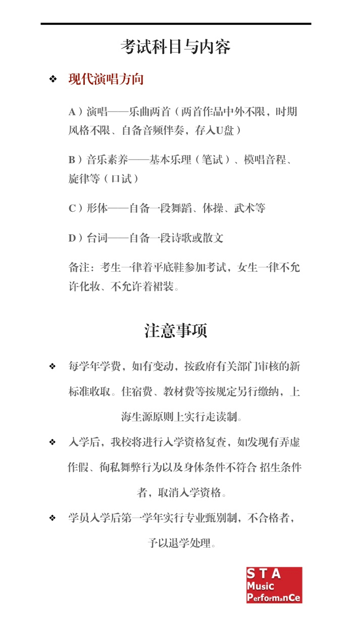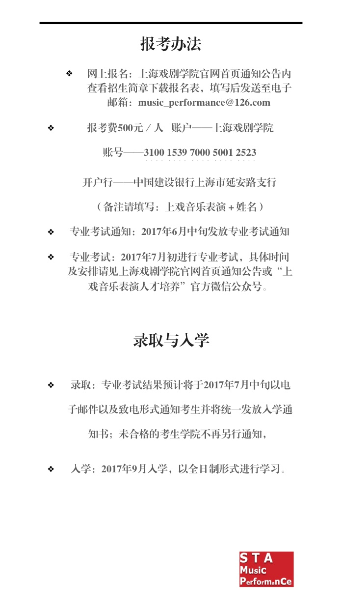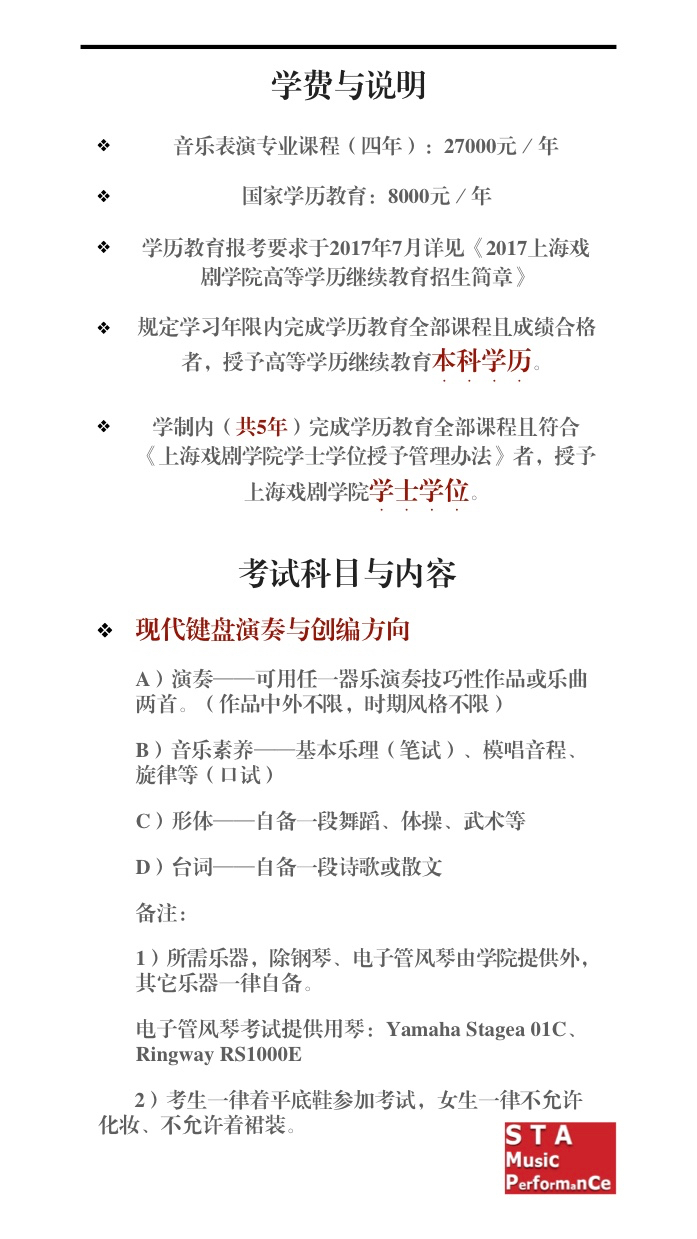 上海戏剧学院2017年音乐表演人才培养招生简章