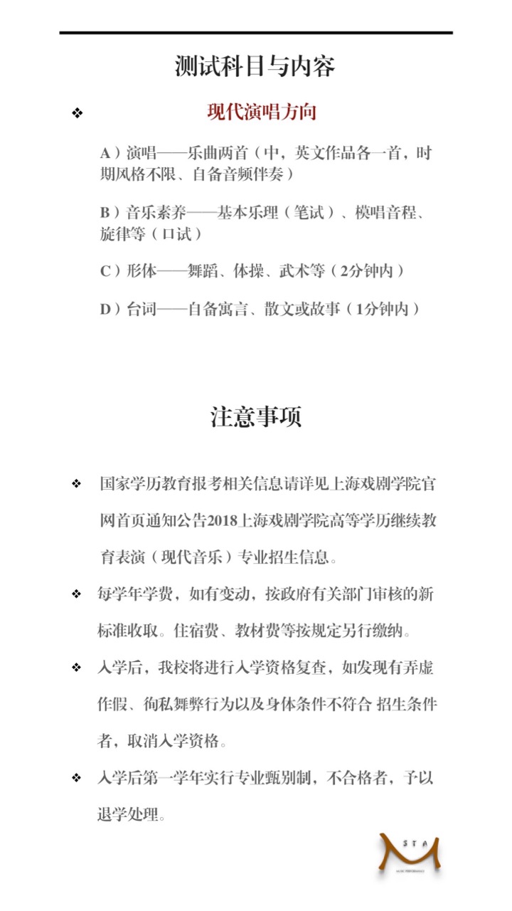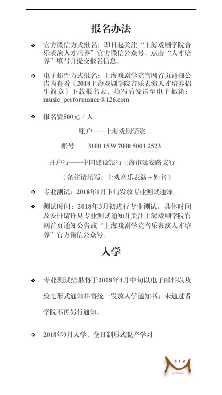 2018上戏音乐表演人才培养招生简章