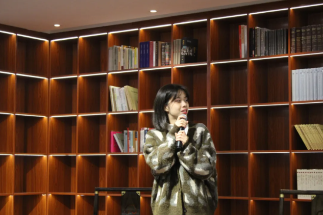另一位二等奖的获得者20级戏剧影视文学专业的张明威同学朗读了她创作的童话式的小诗。想要用童话来点醒世人,表达了勤俭本身所带有的善意,倡导同学们节约粮食。