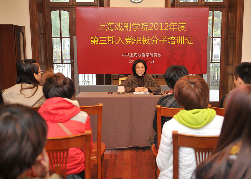 佛西楼内,党训班的学习正有条不紊地进行着。主讲教师、发展规划办主任吴爱丽以“立人,以立德为本”为题,结合十八大大会,深入浅出给同学们上了生动的一堂党课。