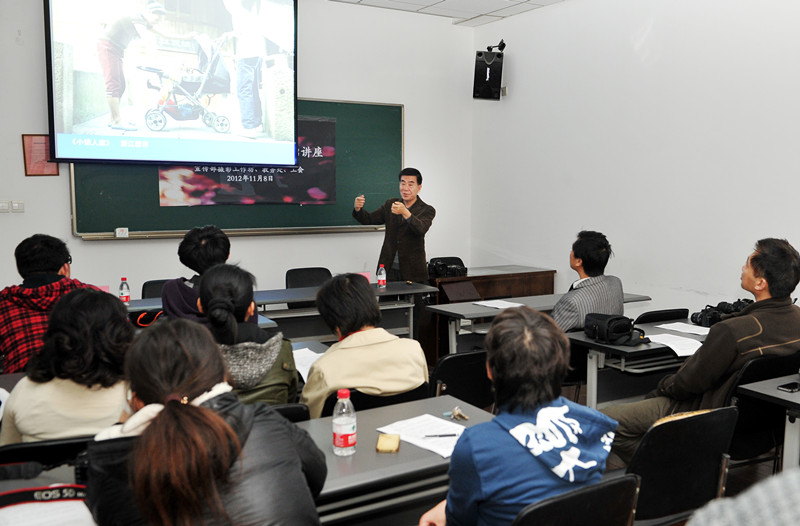 红楼204内,摄影基础讲座正进行得如火如荼。中国摄影家协会会员、上海市摄影家协会理事、同济大学新闻中心姜锡祥副教授鼓励上戏师生拿起相机,用客观的“第三只眼”纪录下当今人民的幸福生活。