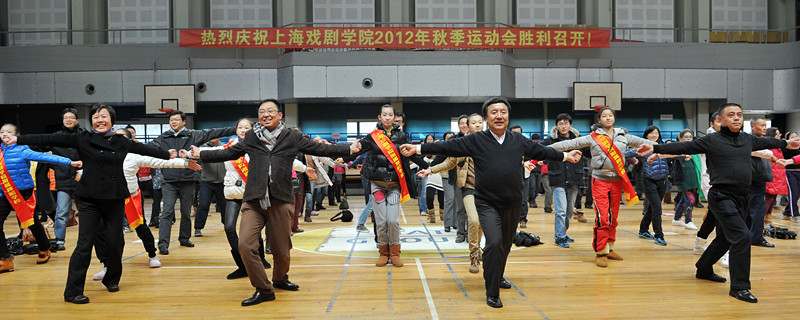 12月6日下午,欢快精彩的上海戏剧学院2012年教职工秋季运动会在舞校体育馆鸣锣开战。党委书记楼巍、院长韩生、党委副书记胡敏、副院长张伟令,以及学校全体教职员工参加了这次妙趣横生的运动会。