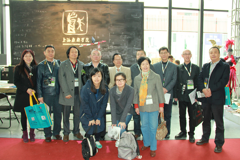 图为中国舞美学会会长及地方舞美学会会长在上戏展区合影