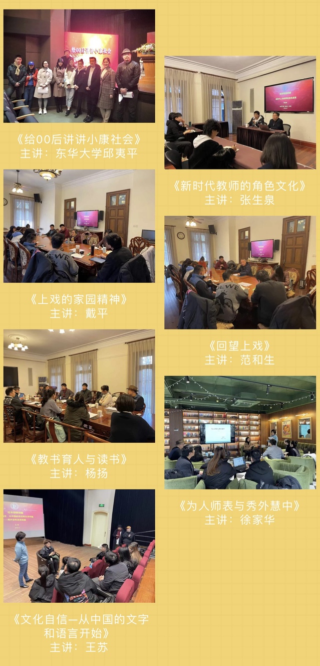聆听《给00后讲讲小康社会》《新时代人民教师的角色文化》《上戏的家园精神》《回望上戏》《教书育人与读书》《为人师表与秀外慧中》《文化自信—从中国的文字和语言开始》等师德专题讲座。