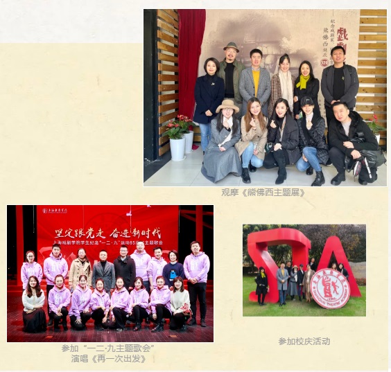 观摩校庆演出《熊佛西》;参加纪念“一二九”运动主题歌会,参加调研座谈会,开展工作坊交流经验。
