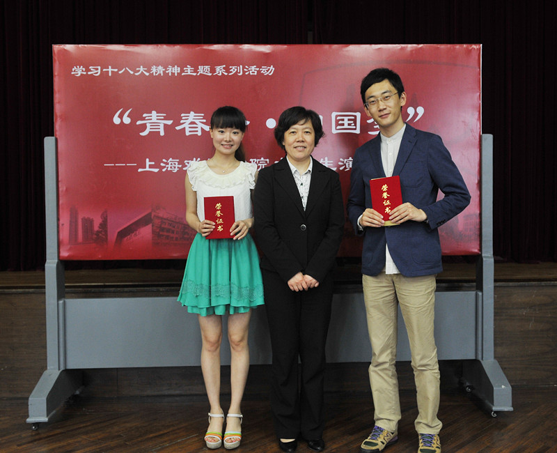 图为胡敏副书记为一等奖得主马聪和郑雯尹颁奖