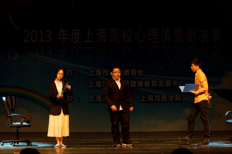 进入决赛的10个心理情景剧主题多样、内容丰富,围绕学生逃课、情感危机、嫉妒心理、就业压力等问题,再现了一个个发生在大学生身边的故事,让在场的老师和同学都受益匪浅。经过半天激烈的角逐,上海戏剧学院的《阳光奇妙夜》夺得了本次大赛的最高奖项——剧目一等奖,上海师范大学的《逃客传》和华东师范大学的《安知我心》荣获剧目二等奖等奖项。我校戏导专业的宋金钊同学同时获得最佳男演员奖。