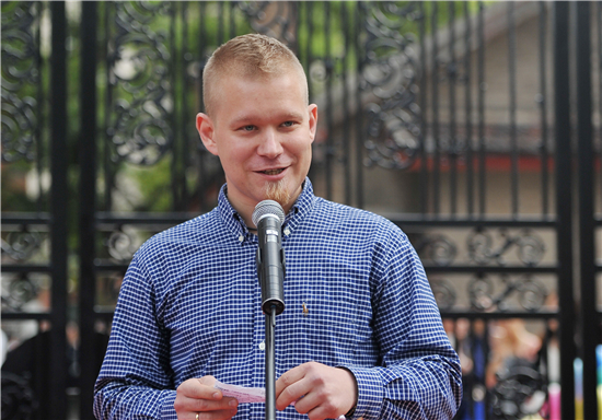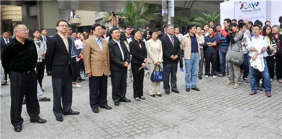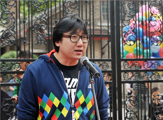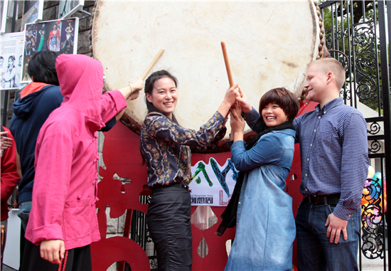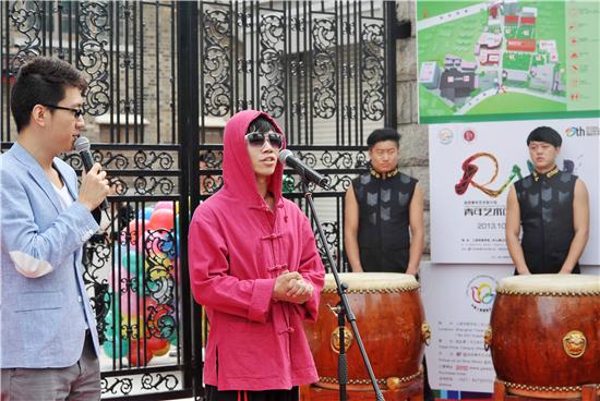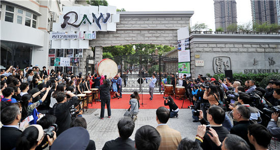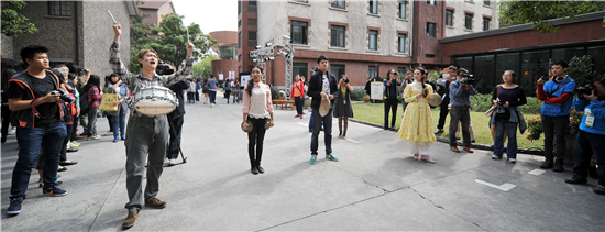 随后,五位青年代表敲响了大鼓,上戏的大门徐徐打开,五彩缤纷的气球从两边飞上云霄,在欢快的鼓点声中,主持人宣布:第十五届上海国际艺术节上海青年艺术创想周正式启动!