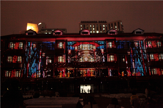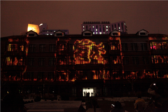 整个投影表演在晚上不同时段播放,每次都吸引了大量眼球。才进校的大一新生表示这是一次从未有过的体验和别开生面的表演形式,3D效果非常震撼,从未想过每天上课的地方也能成为一块“天幕”。这样好的效果都要归功于虚拟实验室的主创人员历时半年,走访了陕西、河南、四川等重要文化古迹及众多历史博物院,采访了相关专家,搜集了大量的汉砖、陶俑、图片、模型和历史场景内涵的动态信息,力求在红楼建筑结构的框架内,为观众带来一场饱含历史文化底蕴与戏剧艺术传承的视觉盛宴。