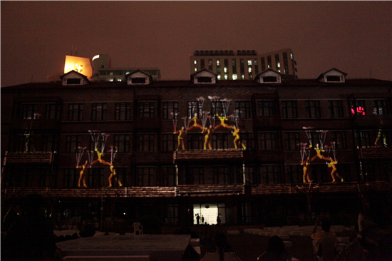 3D建筑投影《红楼@乐舞百戏》是2013年度国家文化创新工程项目《DTAM多维度戏剧艺术博物馆》的重要组成部分,而创想周展示了这一技术无疑让大家大开眼界、赞不绝口。十足的视觉震撼和冲击力配上古典的文化底蕴,让红楼这块“天幕”在创想周大放异彩。(文:学生记者 苏怡丹 图:学生记者 顾秋梦 编辑:榕树)