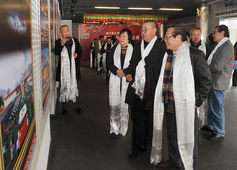 5日上午10时,纪念展开幕式在上戏端钧剧场前厅举行。西藏自治区文化厅副厅长张治忠,上海戏剧学院党委副书记胡敏,中国舞美学会会长蔡体良,曾经对西藏班教学寄予关心和帮助的上戏老领导戴平、葛朗以及马学工家属等出席开幕式。开幕式由上海戏剧学院舞台美术系主任王履玮主持。