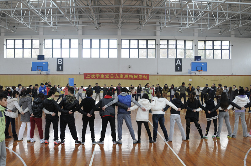 127,“学习三中全会精神,旗帜导航卓越人生”——上海戏剧学院学生党总支素质拓展活动暨秋季党训班结业仪式在上体篮球馆内举行。素质拓展活动是我们上戏大学生素养教育的重要组成部分,是学工部、团委“创新思政教育方式”的一种探索,是上戏学生党总支的品牌支部生活,也是2013年度秋季党训班的结业课程。活动由学工部副部长、团委书记陈云老师带队,学生党总支副书记姚远老师做了拓展动员,全校共有近百名来自各支部的学生党员和党训班积极分子参加了活动。