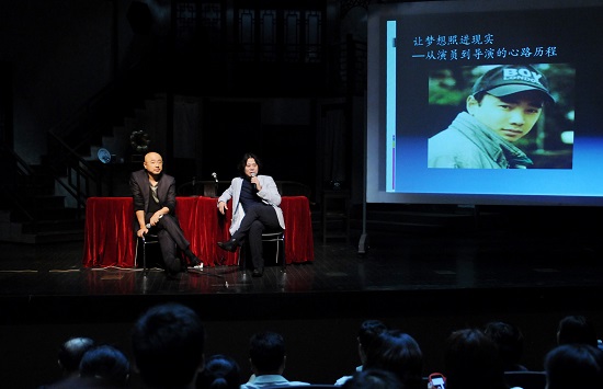 2014年6月19日下午2点左右,“让梦想照进现实——从演员到导演的心路历程”讲座在我校端钧剧场成功举办。在讲座还未开始之前,剧场的两侧过道入口都站满了前来听讲座的学生,现场也是座无虚席,因为“徐峥来了”。他是我校1994级表演系毕业生,曾饰演过《春光灿烂猪八戒》中憨厚可爱的猪八戒,也成功驾驭过《李卫当官》中充满正义感的李卫,成功出演过多部热门电影,而凭借他对艺术的理解和智慧,成功从演员转型为导演,拍摄了《人在�途》和《人再�途之泰�》,成为华语片票房冠军。学校党委副书记胡敏、宣传部部长张生泉、学工部部长徐咏等领导和嘉宾出席了讲座,讲座由教务处处长厉震林主持,表演系教授谷亦安作为主讲老师向听众介绍了徐峥。