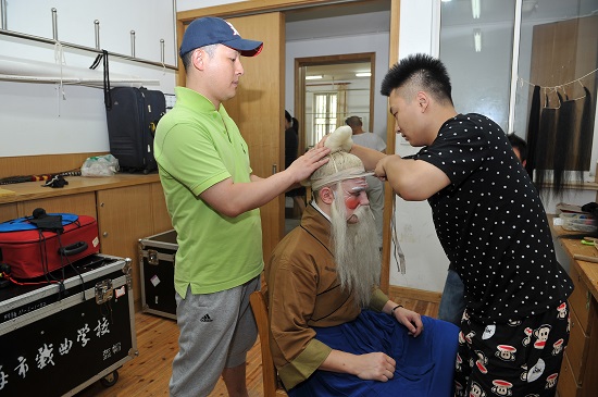 William Potter,这是让所有老师都印象深刻的学生,他来自美国的Cal State University Northridge,在暑期学院的四年期间,很少有学生在学习京剧时表现出如此的热情和天赋。秦老师说:“他非常的有灵性,如果是中国学生,也不一定在这么短的事件中学到如此活灵活现的地步,他连汉语发音都可以说得很好。每一个动作十分的标准,老远的看过去,他就像一个年迈的渔夫,在插科打诨的和秋江讲话。”,因为男生组缺一个人,他一个人从头演到尾,还要背所有的唱词,在宾馆里,在己在房间排练到深夜,遭到投诉,他依然不放弃训练。在宾馆前的空地上继续自顾自的训练,如此痴迷的程度,着实让人感动,他们对中国感兴趣,对中国的文化着迷,他们知道这个东方的国度,是一个不一样的迷人地方。