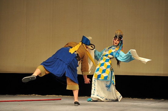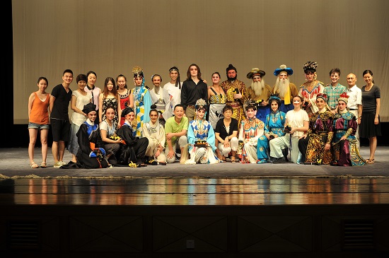 蓝色锦缎的绣花鞋,翻涌的白色水袖,绮丽的眼神。已经是深夜12点多,悄悄走过排练室,依稀听到还有人在咿呀呀的学唱《秋江》,这不是戏曲学校的学生,更不是中国学生,而是来自2014年上海暑期学校中国戏曲项目的留学生,每每走到窗前,看到映衬在墙上挥舞的光影,总是让人感动。