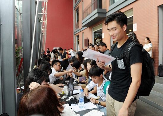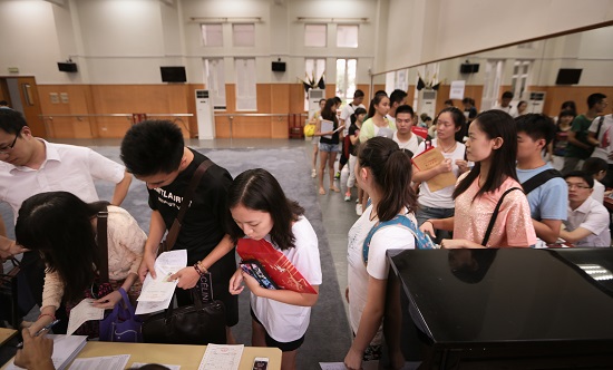 早上8点左右华山路校区上戏剧院和莲花路校区白宫剧场内就聚满了老师、家长和同学,各项新生报到工作正在有条不紊地进行着。