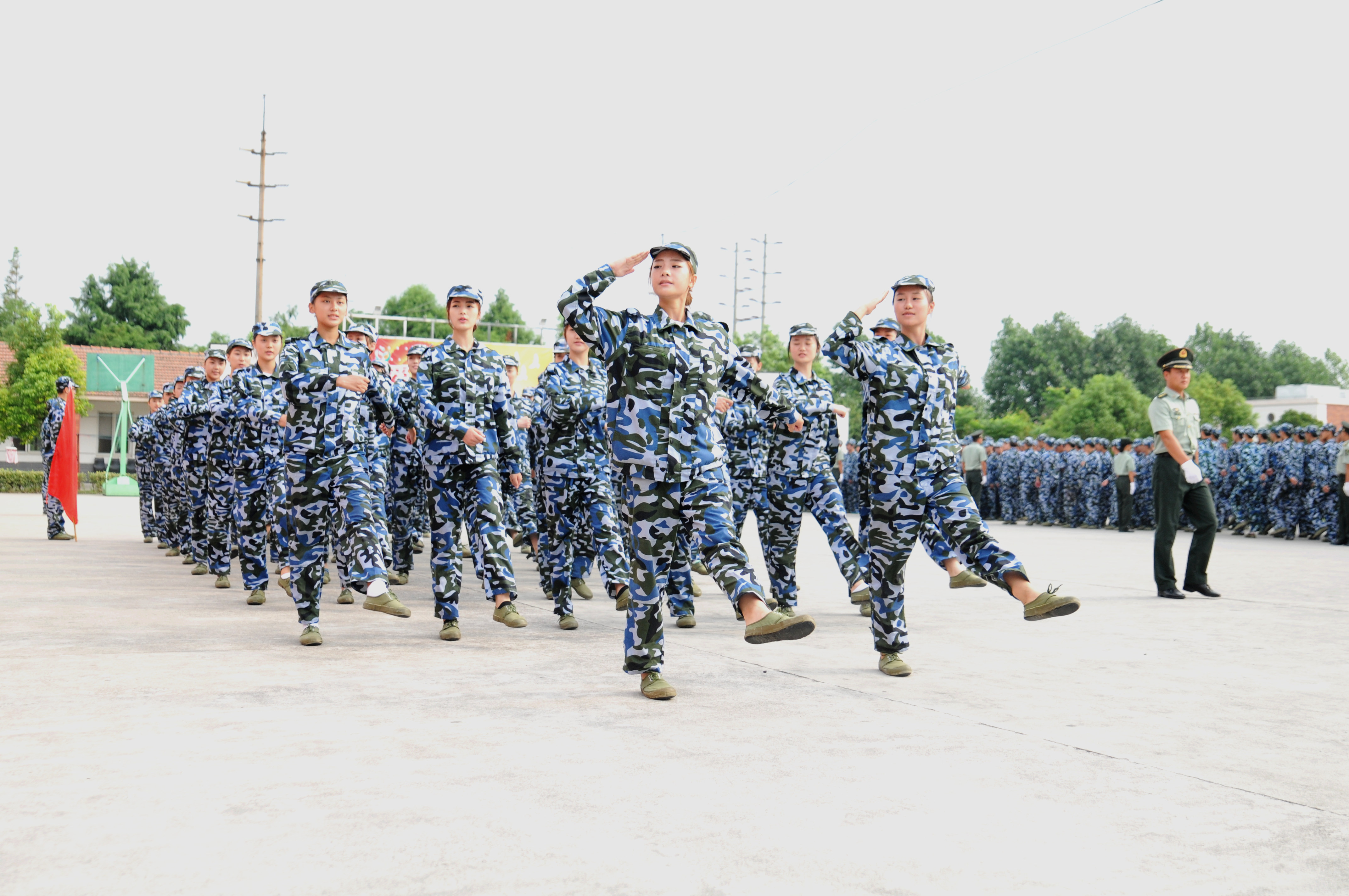 图为楼巍书记检阅受训连队