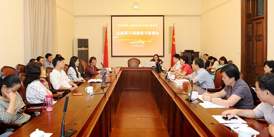 在第三十个教师节到来之际,9月9日,我校在佛西楼会议室召开 “弘扬师德,践行社会主义核心价值观”师德座谈会,院长韩生、党委副书记胡敏出席,组织部长兼人事处长张�、宣传部长张生泉及各院系教师代表参加。会议由胡敏主持。