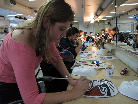 参加工作坊的30多位师生来自巴西各个城市和各个大学,他们均未到过中国,也从未看过京剧。徐家华教授一行不仅用深入浅出、图文并茂的讲座向巴西的师生介绍了中国京剧服饰与脸谱的魅力,还教工作坊的学生学画中国脸谱和制作步摇。学员们在做练习的时候,情趣盎然,常常一连几个小时不休息,陶醉在学习的过程中。经过老师的讲解、示范、辅导,热情好学的巴西师生对美丽的中国京剧服饰与化妆充满了崇拜和喜爱,表示有机会一定要去中国,要继续学习京剧化妆。