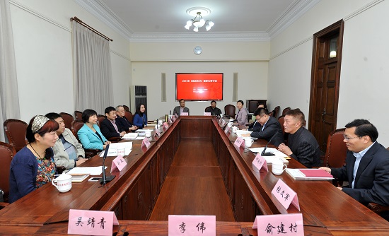 2014年11月23日,来自全国多所985高校和中国社会科学院外国文学研究所的十多位外国戏剧专家教授和学刊主编等齐聚上海戏剧学院,就《戏剧艺术》国际化建设问题展开研讨。韩生院长以及厦门大学党委书记张彦和与会者一起合影留念。黄昌勇副院长在会上致词,热烈欢迎各位专家的莅临指导。