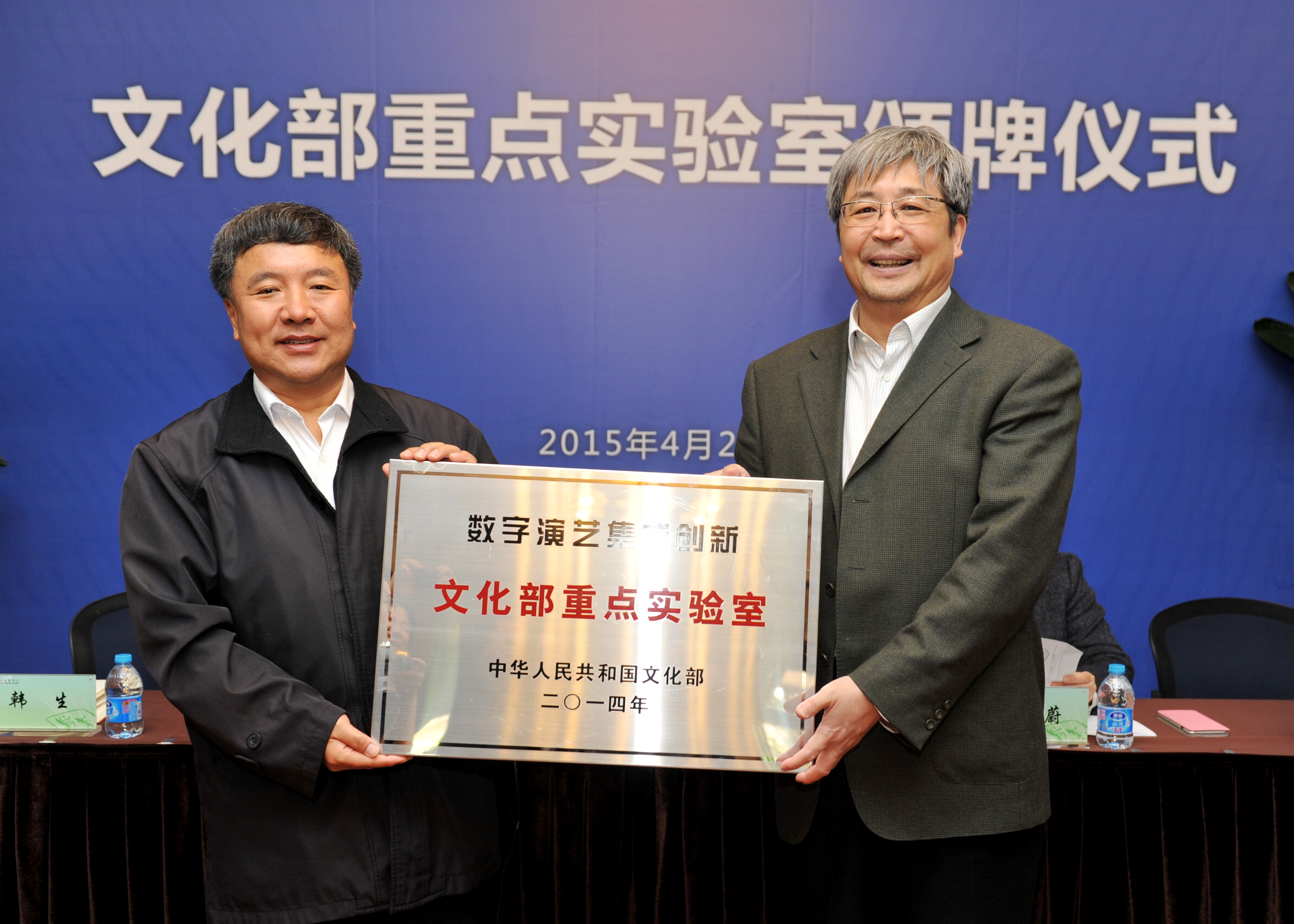 文化部重点实验室工作会议,4月21日在上海戏剧学院举行。文化部文化科技司司长于平在会上为首批文化部重点实验室颁牌。我校领导韩生院长、黄昌勇副院长出席了颁牌仪式。