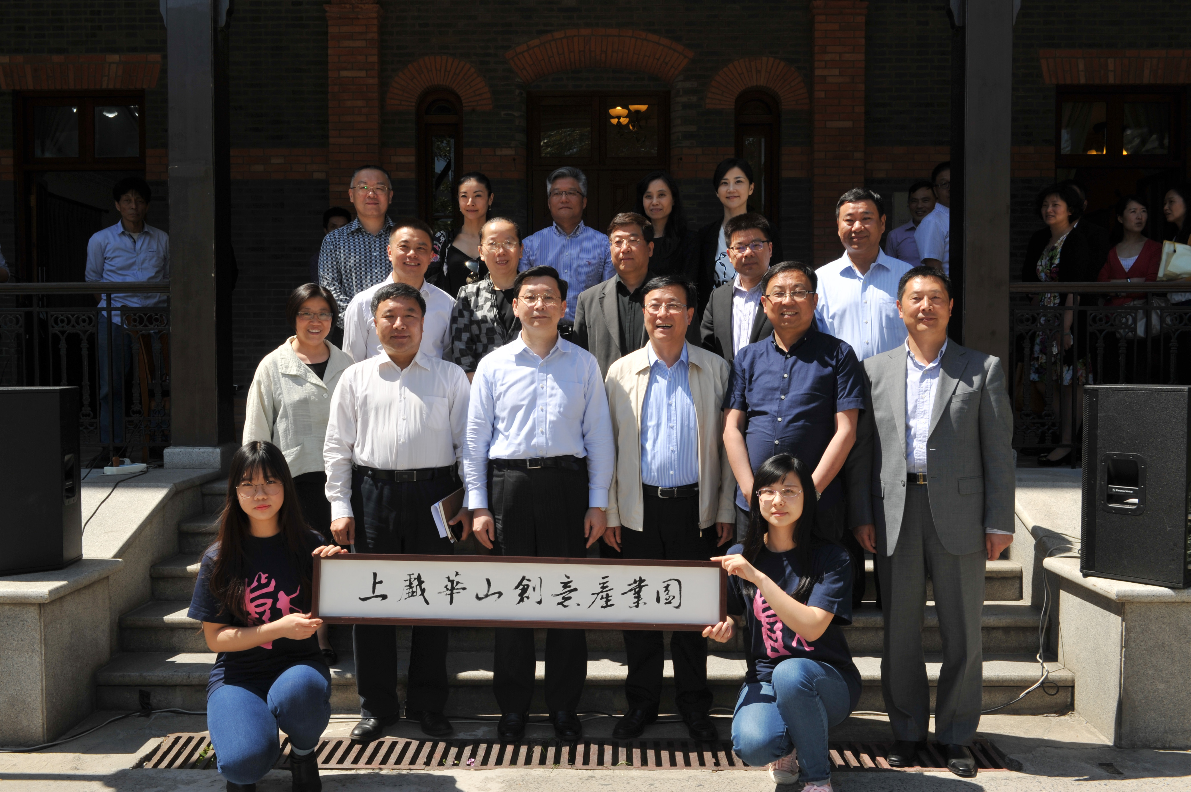 图为孙建平书、陈克宏、楼巍和孙一兵为“华山创意园”揭牌