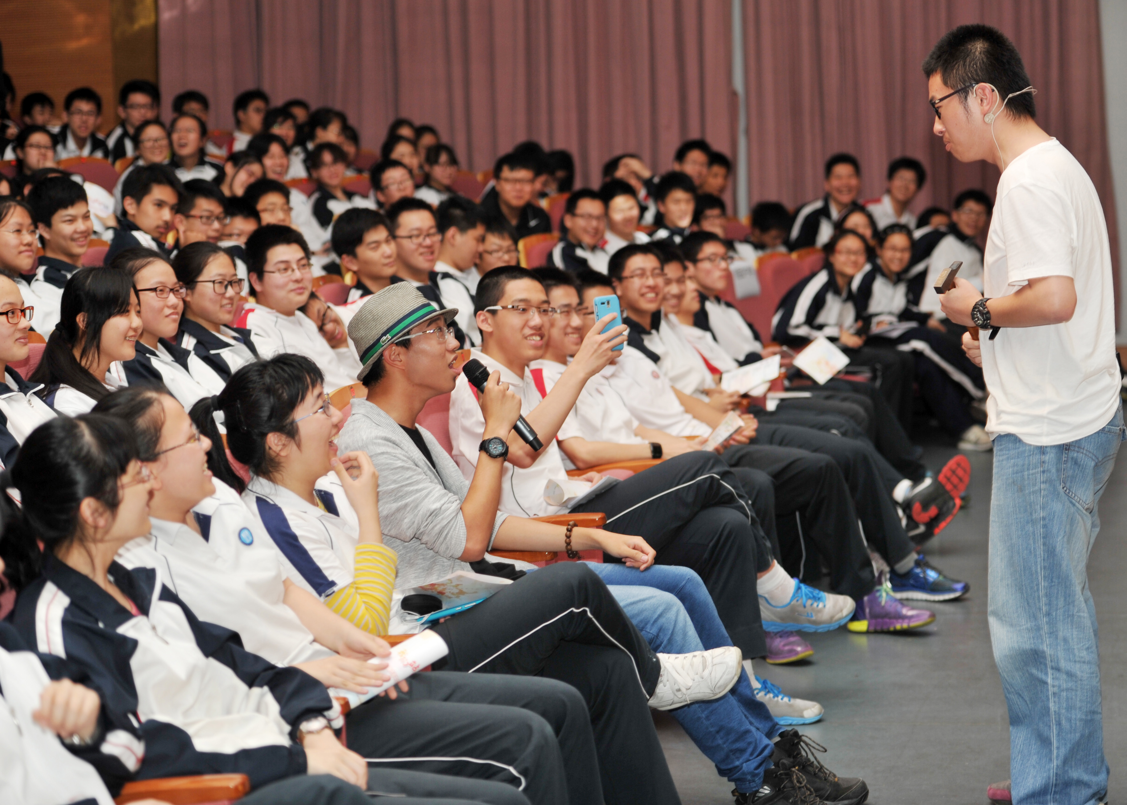 图为领导与来自各所重点高中的学生观看演出