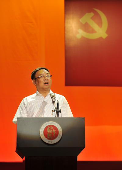 今天,我们在这里集会,热烈庆祝中国共产党诞辰94周年。刚才,校党委表彰了一批优秀共产党员、优秀党务工作者和先进党支部及优秀支部生活案例,他们是近年来在上戏党的建设和各项事业中努力践行党组织和共产党员模范作用中的代表,让我们以热烈的掌声对广大共产党员和各级党组织作出的努力和取得的成绩表示热烈的祝贺!