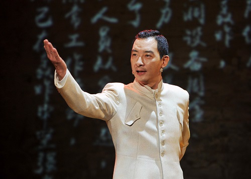 图为我校校友、著名演员郝平正在朗诵