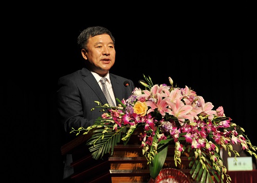 在新生代表、校友代表、教师代表依次发言后,院长韩生发表讲话,在抗战胜利70周年和上戏建校70周年之际,他首先提议全体2015级新生向为国家做出贡献,为学院的建设奠基的老一代艺术家和教育家们表示深深的敬意,他向同学们提出了三点要求:首先,要深刻认识上戏和我们自己的使命和责任,坚持培养艺术专业精英,引领艺术创作创新的使命定位;其次要充分珍惜利用上戏的艺术学科专业生态环境,并在其中找到自己适合的发展空间;最后要让同学们成为学习的主人,只有成为学习的主人,才有可能成为未来社会的主人,真正在艺术专业领域安身立命。