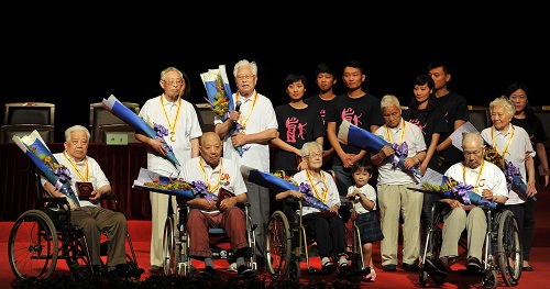 典礼正式开始之前,举行了简短而庄重的中国人民抗日战争胜利70周年纪念章转授仪式。今年是纪念中国人民抗日战争暨世界反法西斯战争胜利70周年,同时也是上海戏剧学院建校70周年,抗战胜利初期,一批文化老前辈在四个月的时间内建立了上戏的前身——上海市立实验戏剧学校,从此担任起为国家培养艺术人才的历史使命。2015年9月2日,中共中央、国务院、中央军委向约21万名抗战老战士老同志、抗战将领或其遗属颁发了中国人民抗日战争胜利70周年纪念章。上戏有11名老同志获此殊荣。他们的平均年龄已有90岁。校领导上台为老同志转授了纪念勋章,新生代表上台为他们敬献了鲜花。老同志胸挂勋章,在《丰碑》的诗朗诵营造的氛围里聚在一起,他们的身上镌刻了“先天下之忧而忧”的爱国情怀和“苟利国家生死以”的英雄气概,上戏的师生会继承并发扬抗战老同志的崇高精神,在追求理想的道路上努力进取,创造辉煌。