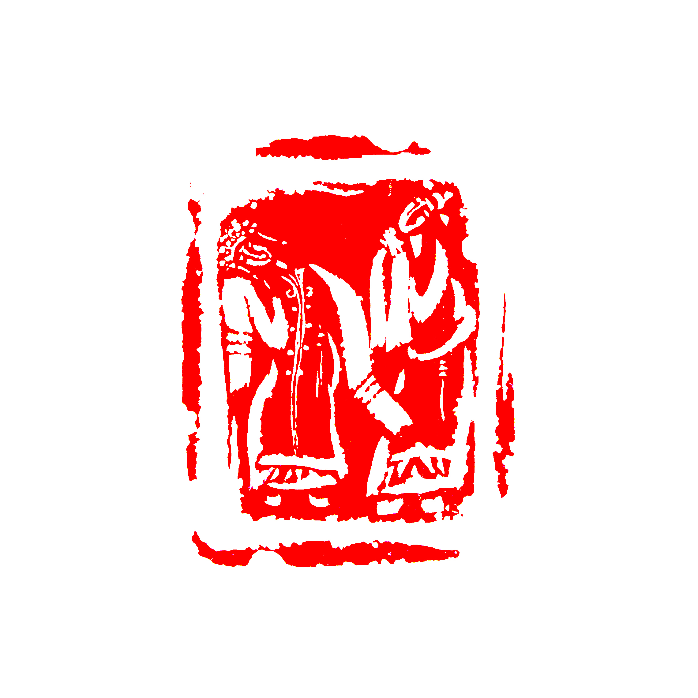 沈鼎雍的戏剧肖形印可分为三个大的系列,为数众多,各具特色。第一类是戏曲人物印,基于京昆剧种,将旦末净丑等角色刻入印面,尤以才子佳人为大宗。舒展的水袖、英武的锦鸡翎、刚强的大刀长矛跃入眼帘,只有红白两色却惟妙惟肖。沈鼎雍粗处大刀阔斧,细处绵密入微,以刀石的质感传递戏剧的神韵。第二类是脸谱印。戏剧脸谱常作为中国传统文化基本元素出现在人们视野,沈鼎雍对其进行抽象加工,造型极简,却透出或刚烈、或恬静、或超脱的性情。第三类是娱乐印,参考汉砖石造像样式,表现舞蹈、弹琴、吹箫等音乐活动,虽不见人物面目,欢乐之情却洋溢其间,带给观者古穆醇静的享受。