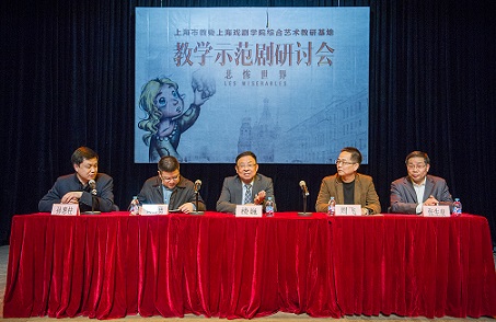 在国务院办公厅发布《关于全面加强和改进学校美育工作的意见》文件的背景下,上海戏剧学院综合艺术教研基地在上海市教委的指导下,展开了探索与实践,成效卓著。作为基地推出的首个项目、历经一年打磨的教育示范剧《悲惨世界》,从雨果的经典小说中选取素材,四折“韵剧”全部使用韵文,表演过程中融合了钢琴、戏曲、音乐剧等元素,演员的表演幽默逗趣,台词合辙押韵,唱腔响亮动人,为观众带来了全新的观感体验。研讨会上,基地还推出了另一全新剧目《老人与海》,这台改编自海明威小说的作品也是“韵剧”。两个剧朗朗上口的韵文极具吸引力,好读好记好演,台下观众席中不时发出阵阵笑声和掌声。