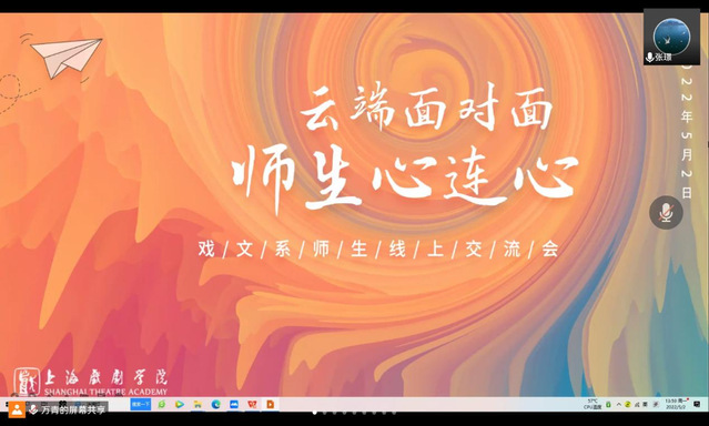 值此“五一”劳动节假期之际,为了进一步做好疫情防控工作,倾听师生心声,回应师生关切,增强师生互动,根据学校工作安排,2022年5月2日下午,戏文系于腾讯会议平台组织召开了一场主题为“云端面对面,师生心连心”的师生线上交流会。全体戏文系教师和五十余位来自不同年级、班级的学生代表们围绕疫情防控、教育教学、心理支持、就业创业等话题展开了深入细致的恳谈。