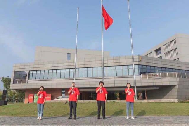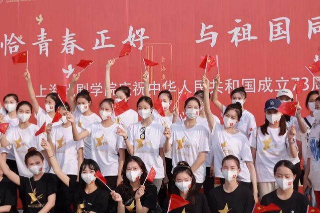 10月1日上午,百余名上海戏剧学院师生齐聚昌林路校区,举行“恰青春正好 与祖国同行”国庆升旗仪式,共庆共和国的第73个华诞。