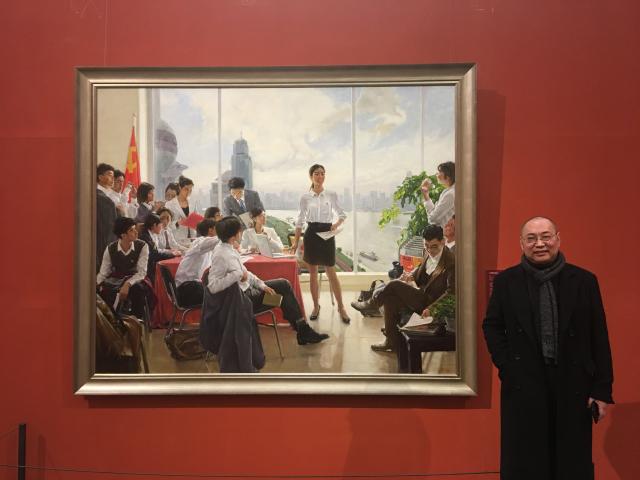 近日,中华艺术宫正厅悬挂一副巨型油画《支部建在楼上》,引起各界广泛关注和好评。这幅反映城市基层党建工作和浦东陆家嘴的“金领驿站”,艺术地记录在中国第一高楼里开展楼宇党建活动的画面,是由我校舞美系李前教授于去年年6月创作完成,他以陆家嘴地区党建服务中心为原型,敏锐捕捉描绘新时期党建的大主题,正是去年习近平总书记在上海考察楼宇党建的生动画面。
