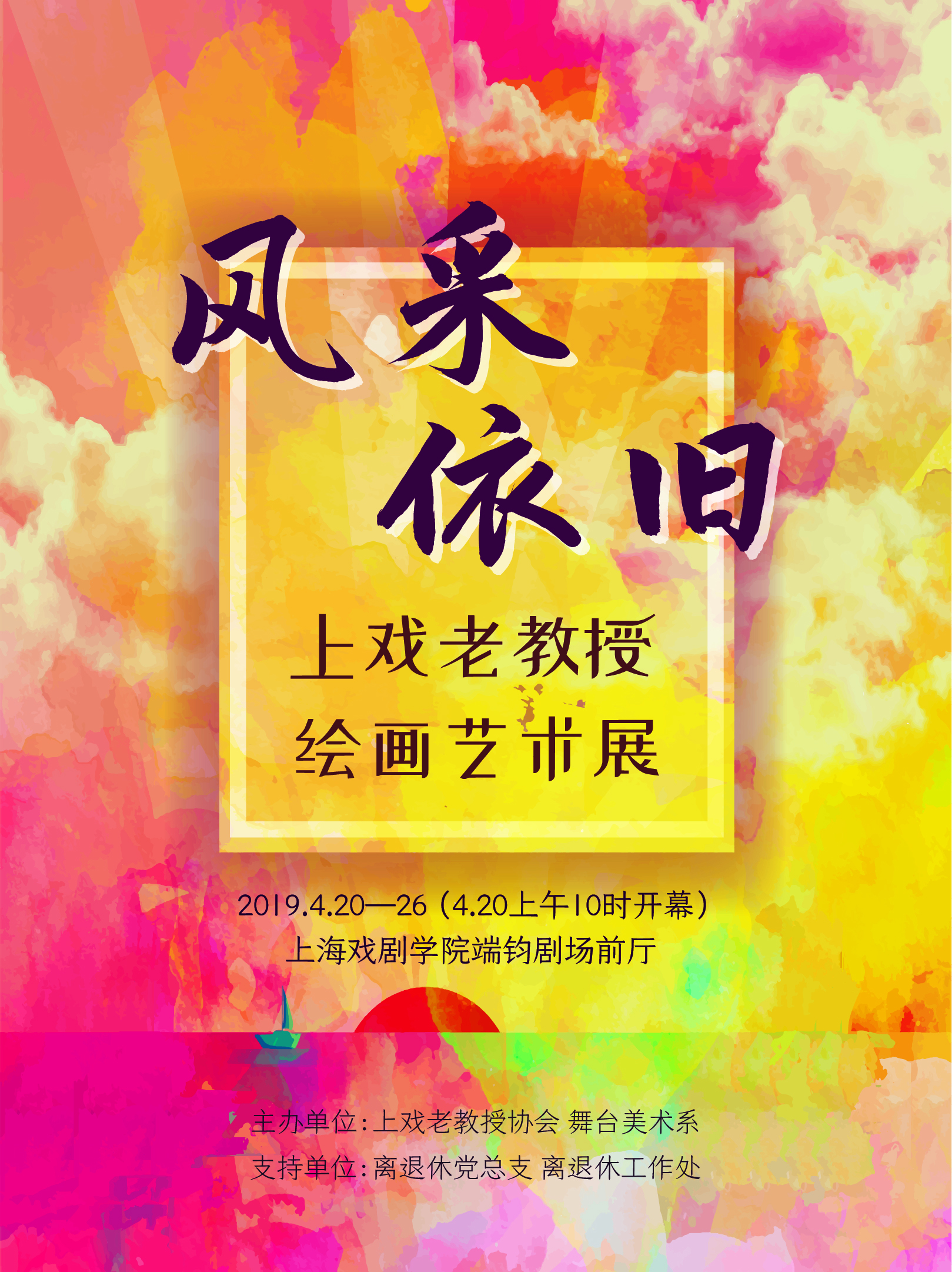 2019年4月20日上午10时,由上海戏剧学院老教授协会和舞台美术系共同主办的“风采依旧”——上戏老教授绘画艺术展在华山路校区端钧剧场前厅正式开幕。本次画展共展出老教授协会会员周本义、王克文、陈钧德、胡妙胜、刘元声、李玮、胡雨心、王邦雄、郑国良、徐明德、刘永华、陈子平、傅建翎13位老艺术家的优秀绘画作品29幅。