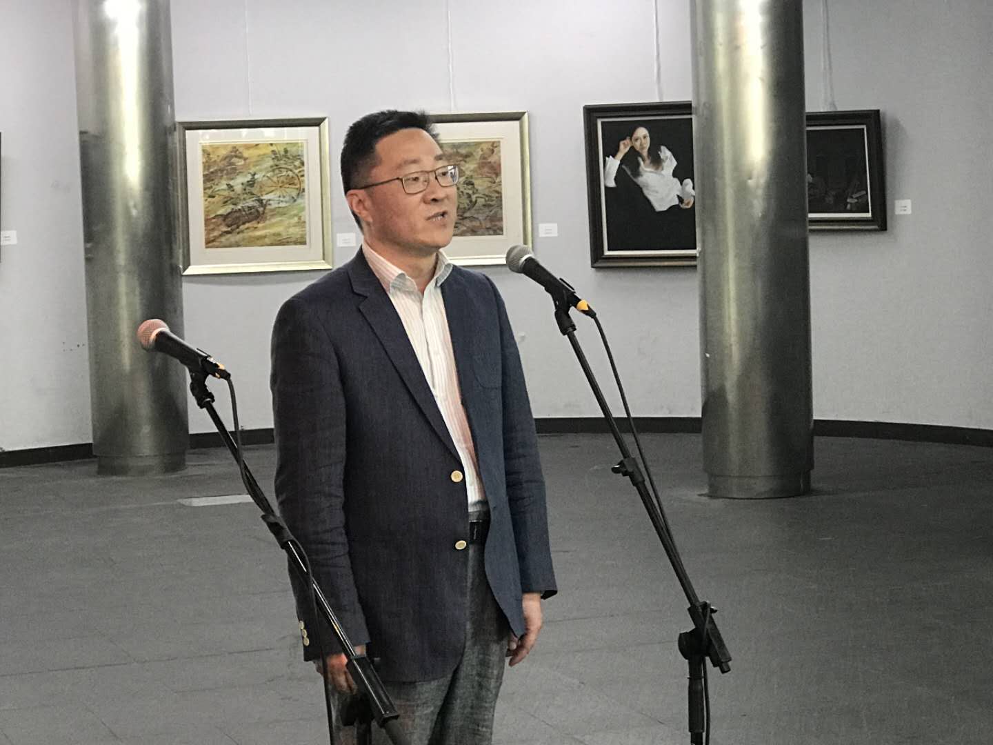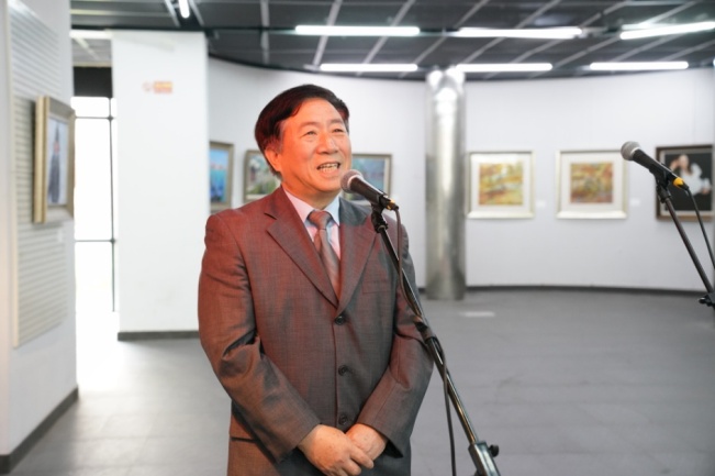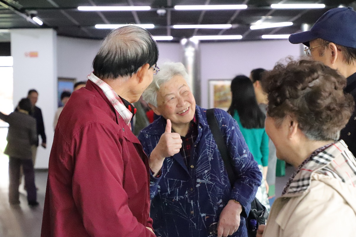 本校老教协会长李建平首先致辞:本次画展集中展出了舞美系这么多老教授的优秀作品,受到学院师生的欢迎,在布展期间前来参观的观众就络绎不绝。感谢学院领导对本次画展的支持,感谢离退休党总支和离退休工作处为画展筹备所付出的努力。今后我们要更多发挥我们协会老教授、老艺术家的作用。