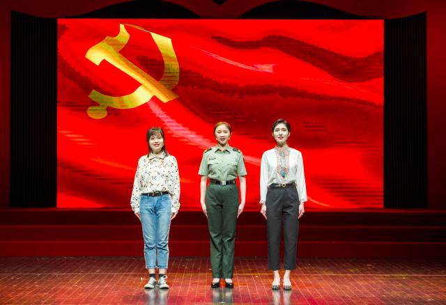 “坚定理想信念”篇章,以入党思想汇报串起了三位同学关于理想信念的故事。他们分别通过家人的言传身教、家乡的巨大变化、军营的使命感召,表达了自己对党的忠诚,对理想信念的坚守。身为学生党员的张艾嘉同学上台用嘉善宣卷这一说唱形式表达了对党和国家的炽热情感,并通过自己成长经历的讲述,号召同学们争做有理想、有使命、有担当、有责任的新时代上戏青年。