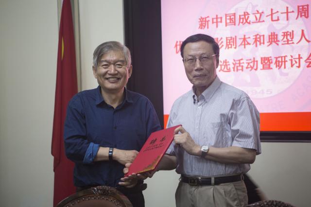 王兴东会长为评委会评委颁发了聘书,评委会主席周斌教授汇报了评委会的主要工作以及评选标准。评委会从近340部候选电影名单中选出了117部初评入围作品,又在这117部中进行了第二轮投票,最终选出了70部代表新中国成立70周年的优秀电影剧本和典型人物形象的优秀影片,献礼新中国成立70周年。