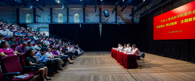 9月12日下午,中共上海戏剧学院委员会“不忘初心、牢记使命”主题教育动员会在新实验空间剧场举行。市委第九巡回指导组成员、上海戏剧学院党政领导班子、“不忘初心、牢记使命”主题教育领导小组及办公室全体成员、全体中层干部、各基层党组织书记及其他支委、退休领导代表、优秀党员代表、党外代表等出席。会议由党委副书记、院长黄昌勇主持。