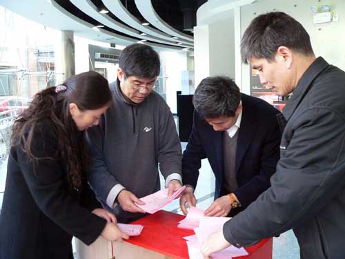 图为监票人正在统计投票结果