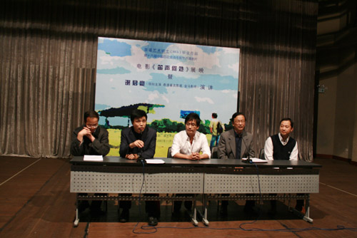 影片放映结束后,举行了题为《从香港到内地 从舞台到影视》的专题讲座。讲座邀请该片男主角谢君豪主讲,副院长孙惠柱、研究生部主任宫葆荣、该片导演崔轶及其导师张仲年教授出席了讲座。副院长孙惠柱在讲座上致辞,感谢谢君豪对影片《笛声何处》的倾情出演,并对我校在读MFA的作品表示赞赏和鼓励。