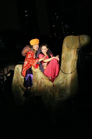 近日来,每到晚上,上海戏剧学院的校园便呈现出童话中的奇异景象,小别墅幻化成海船,草坪变成摩洛哥的海滩,大路当中竖起了阿拉伯的帐篷;身着传统服装的挪威乡村人,奇形怪状的山妖,魅惑的绿色女妖,高大的骆驼载着先知和阿拉伯女郎……形形色色穿行于校园之中,让人仿佛置身于奇妙的梦中世界,引得校园内的师生和路人不由得驻足观看。这是上海戏剧学院四年级毕业班的学生正在排演04级表演系、导演系、舞美系毕业演出――易卜生的名作《皮尔・金特》。