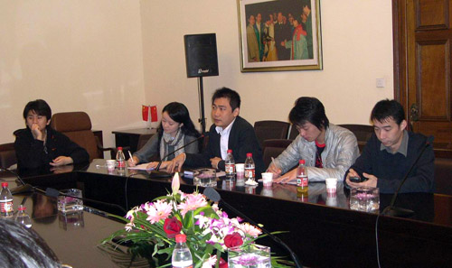 11月26日上午10:30,2007上海市大学生暑期社会实践表彰大会汇报剧目《新玩偶之家》建组仪式在我校佛西楼会议室举行,我院党委副书记、副院长葛朗,共青团上海市委学校部部长金梅、宣传部长张生泉、学生处副处长徐咏、团委书记陈云、共青团上海市委学校部吴志晖、柳咏以及所有剧组成员共同出席了本次建组仪式。