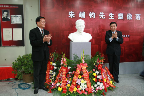 落成仪式上,副书记、副院长葛朗首先致辞,回顾了朱端钧先生献身教育事业、无私奉献、“死也要死在排练场上”的光辉一生,对朱先生为上海戏剧学院作出的崇高贡献表示感谢,上戏人要更加珍视朱先生的精神和品格,为掀起文化建设新高潮作出应有的贡献。随后,迟志刚副主席致辞,褒扬了朱端钧先生对中国戏剧事业作出重要贡献,以及在戏剧教育事业中作出的伟大成就。朱先生的四儿媳吴永湄代表家属发言,表达了对父辈的追忆和对上戏现任领导对朱先生的重视和尊敬的感激之情。