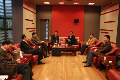 图为东明街道领导与我校领导在贵宾室座谈