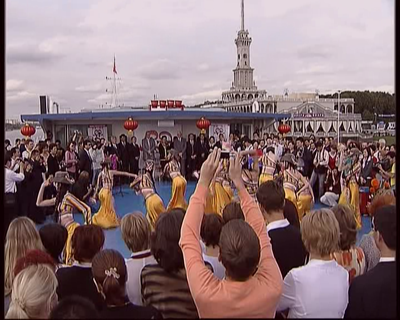图为舞蹈学院学生在伏尔加河上演出